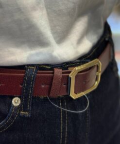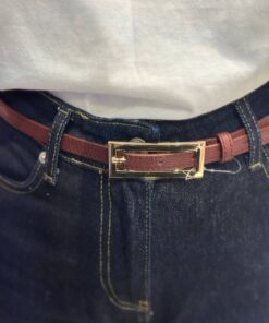 Dikdörtgen Tokalı Bordo İnce Kemer