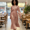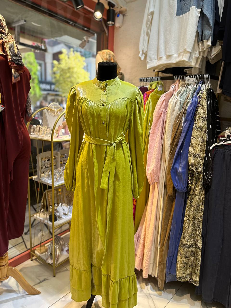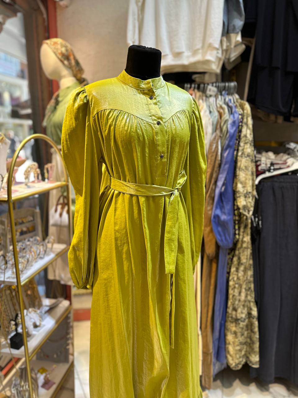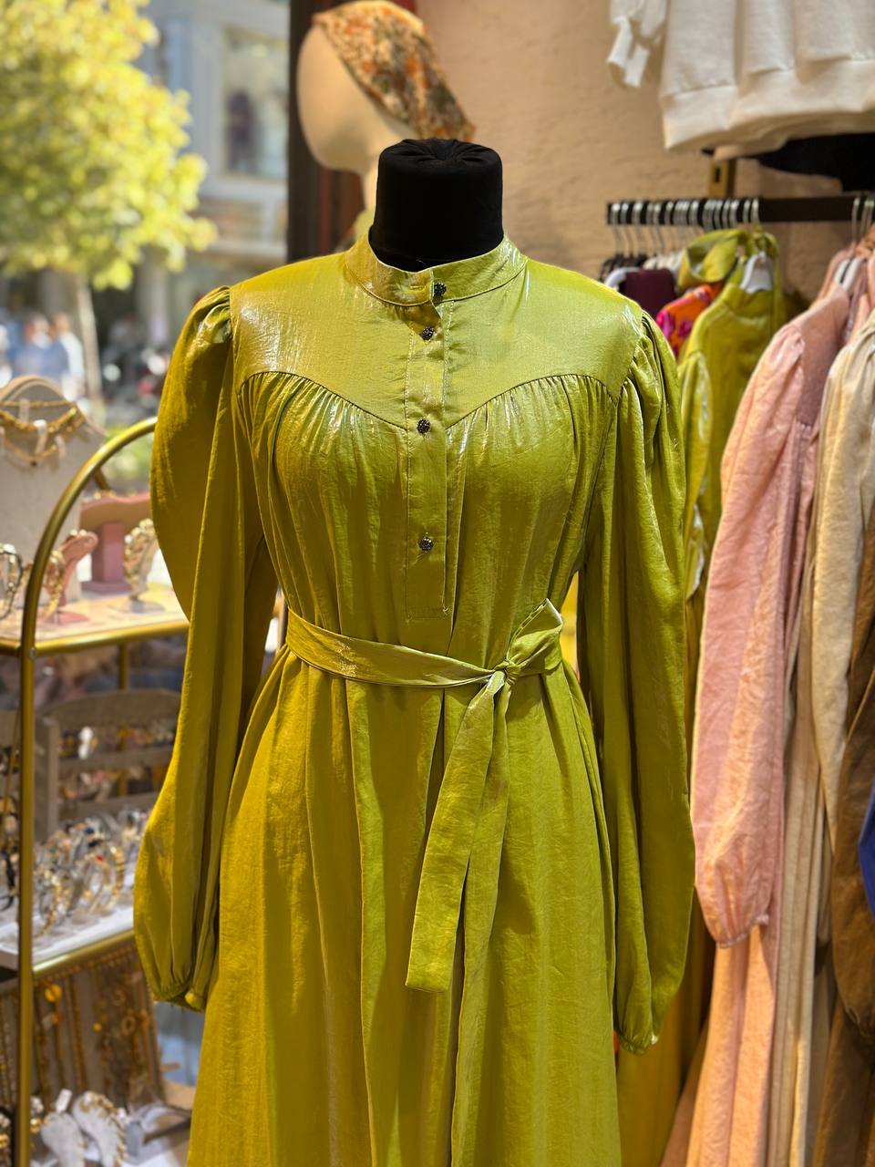 Model: Düğmeli yaka, uzun kollu, kemer detaylı